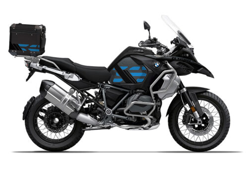 BMW Black Aluminum Top Box Black & Blue Reflective Stripes