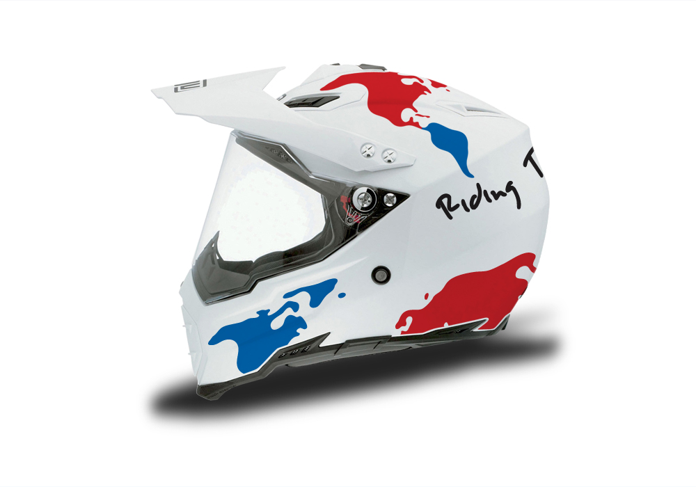 Signature Custom Designs THE GLOBE Series styling kit, gives to your AGV AX-8 DUAL Helmet a unique and adventure character.