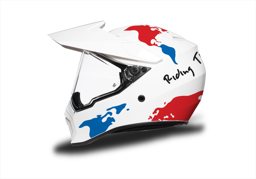 Signature Custom Designs THE GLOBE Series styling kit, gives to your AGV AX-9 Helmet a unique and adventure character.