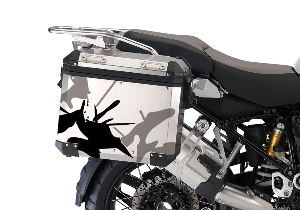 BMW Aluminum Side Panniers Safari Grey & Black Stickers Kit