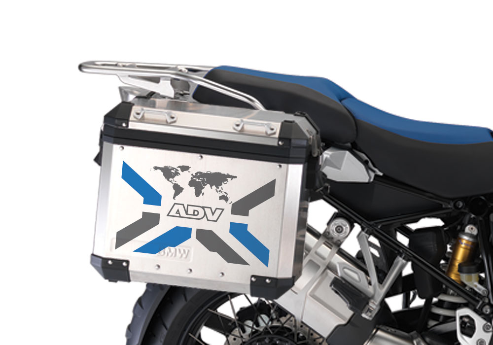 Signature Custom Designs THE GLOBE Series styling kit, gives to your BMW Aluminum Side Panniers a unique and adventure character.