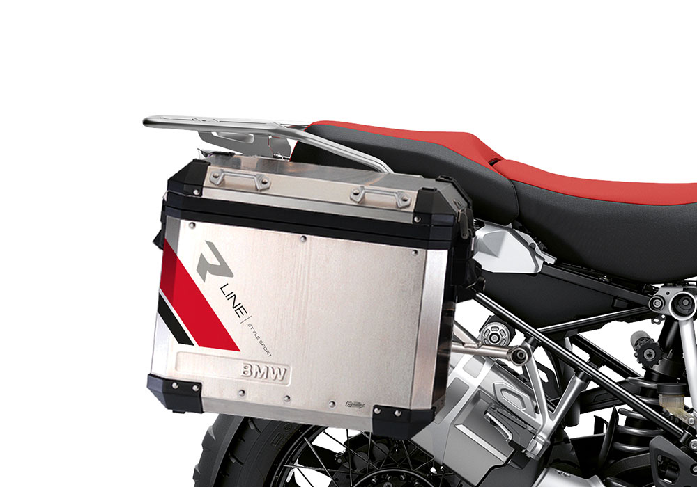 Signature Custom Designs R-LINE styling kit gives your BMW Aluminum Panniers a unique and sport character.