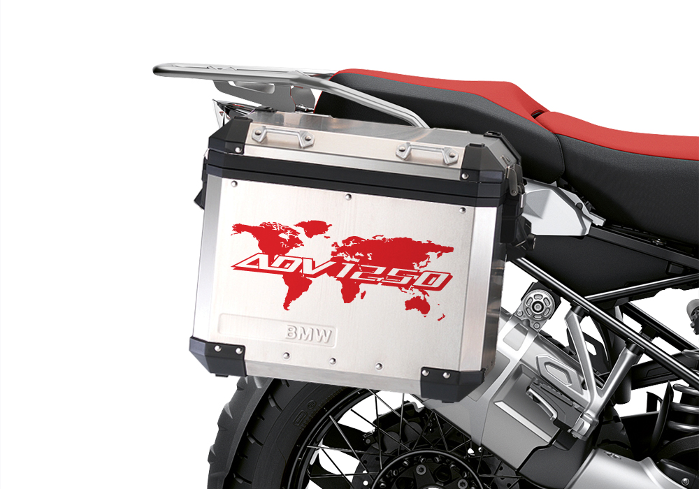 BMW Aluminum Side Panniers The Globe ADV1250 Red Gloss Stickers