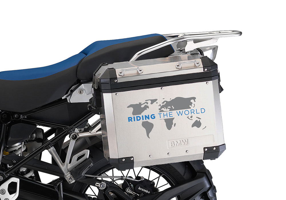 BMW Aluminum Side Panniers The Globe Grey & Blue Stickers