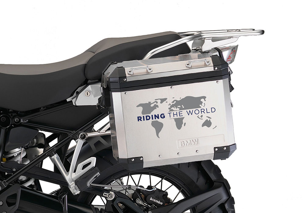 BMW Aluminum Side Panniers The Globe Grey & Dark Blue Stickers