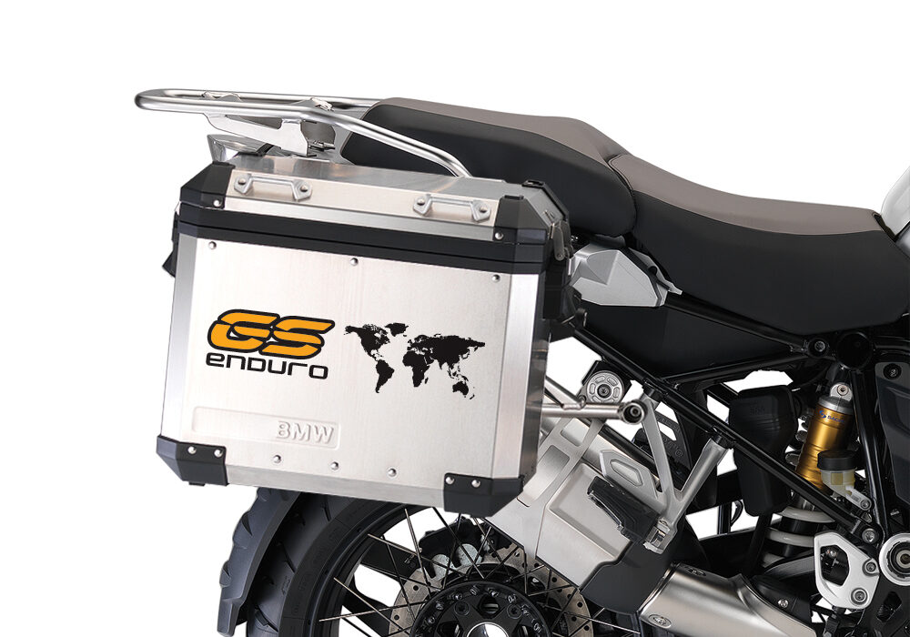 BMW Aluminum Side Panniers The Globe GS Enduro Black & Yellow Stickers