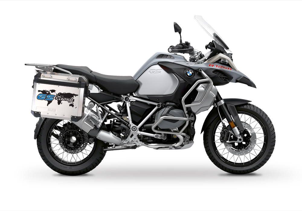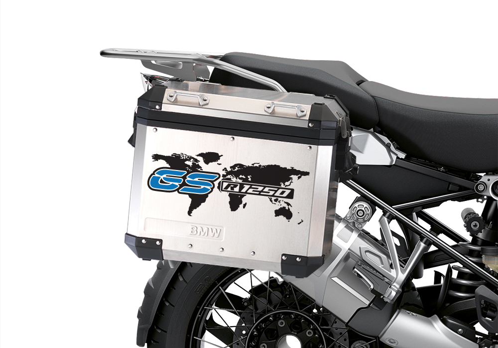 BMW Aluminum Side Panniers The Globe GS R1250 Black & Blue Stickers