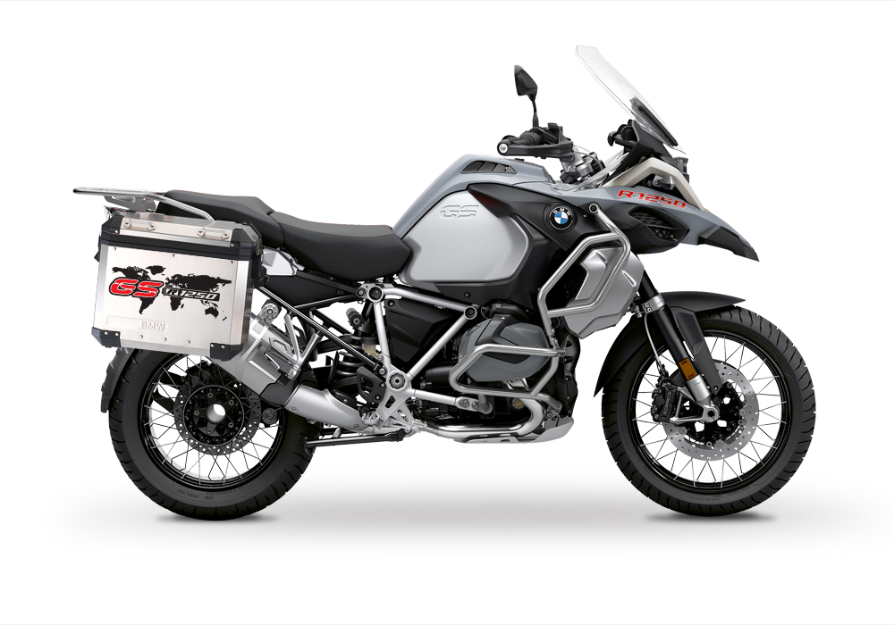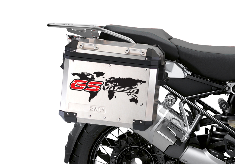 BMW Aluminum Side Panniers The Globe GS R1250 Black & Red Stickers