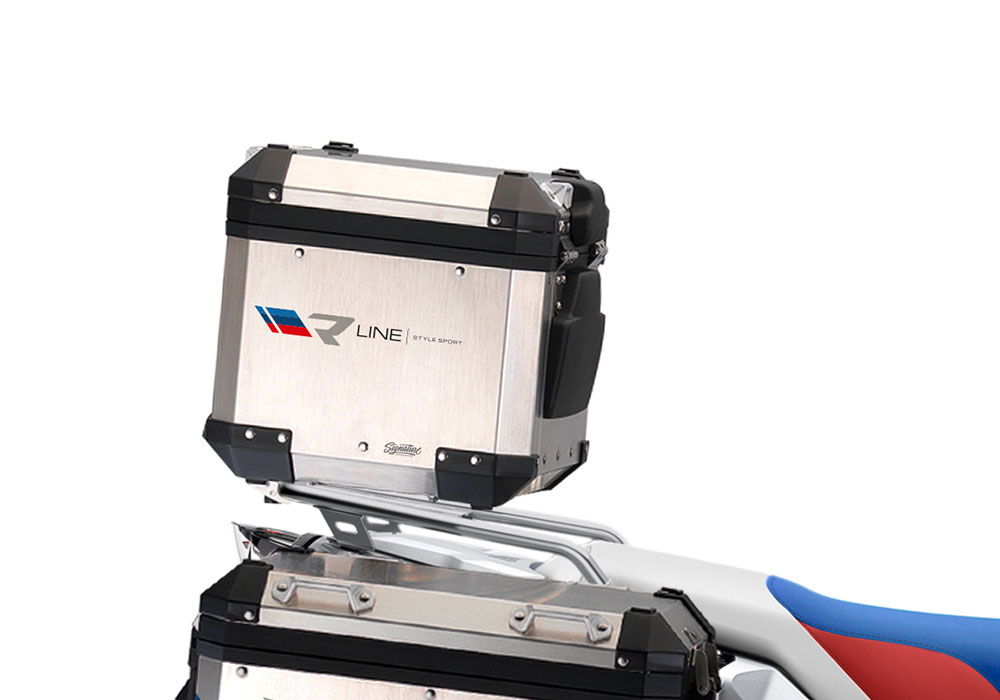 Signature Custom Designs R-LINE styling kit gives your BMW Aluminum Top Box a unique and sport character.