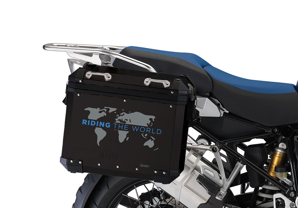Signature Custom Designs THE GLOBE Series styling kit, gives your BMW Aluminum Panniers a unique and travel character.