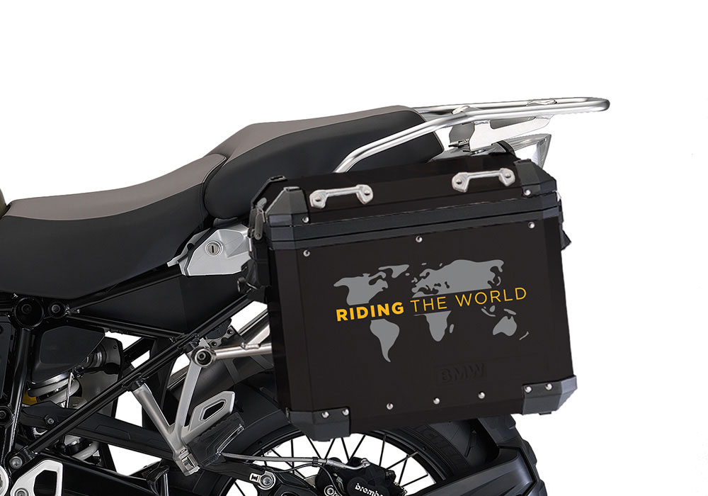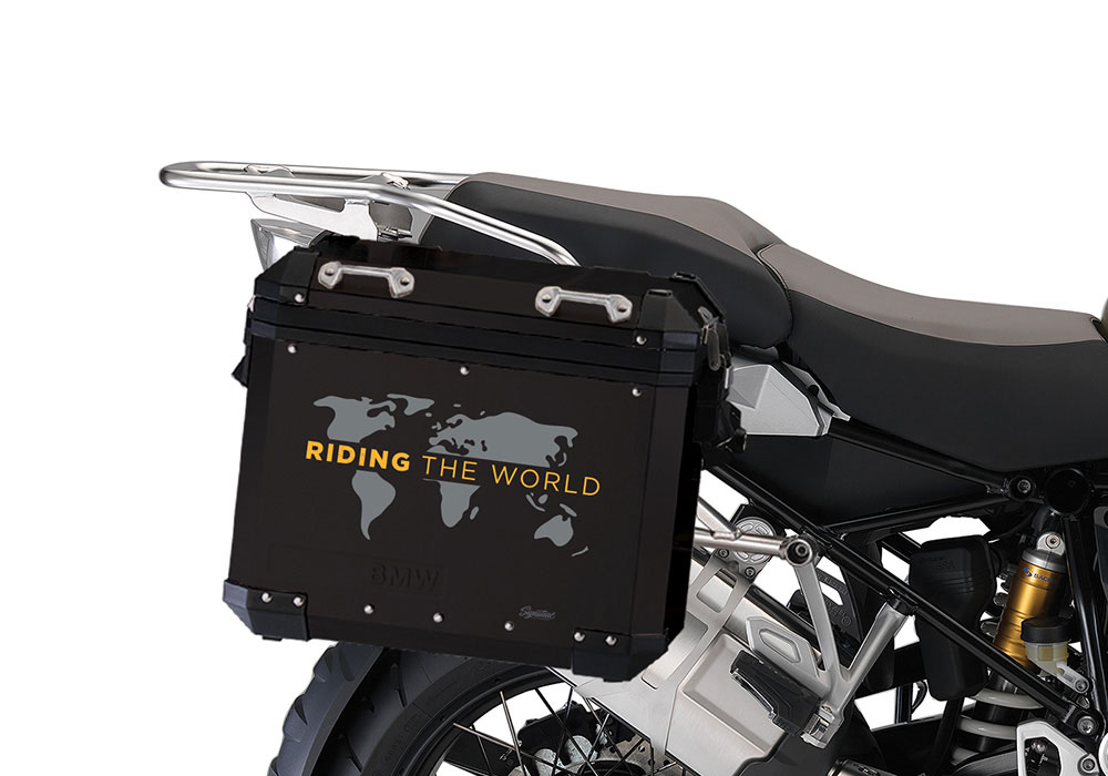 Signature Custom Designs THE GLOBE Series styling kit, gives your BMW Aluminum Panniers a unique and travel character.