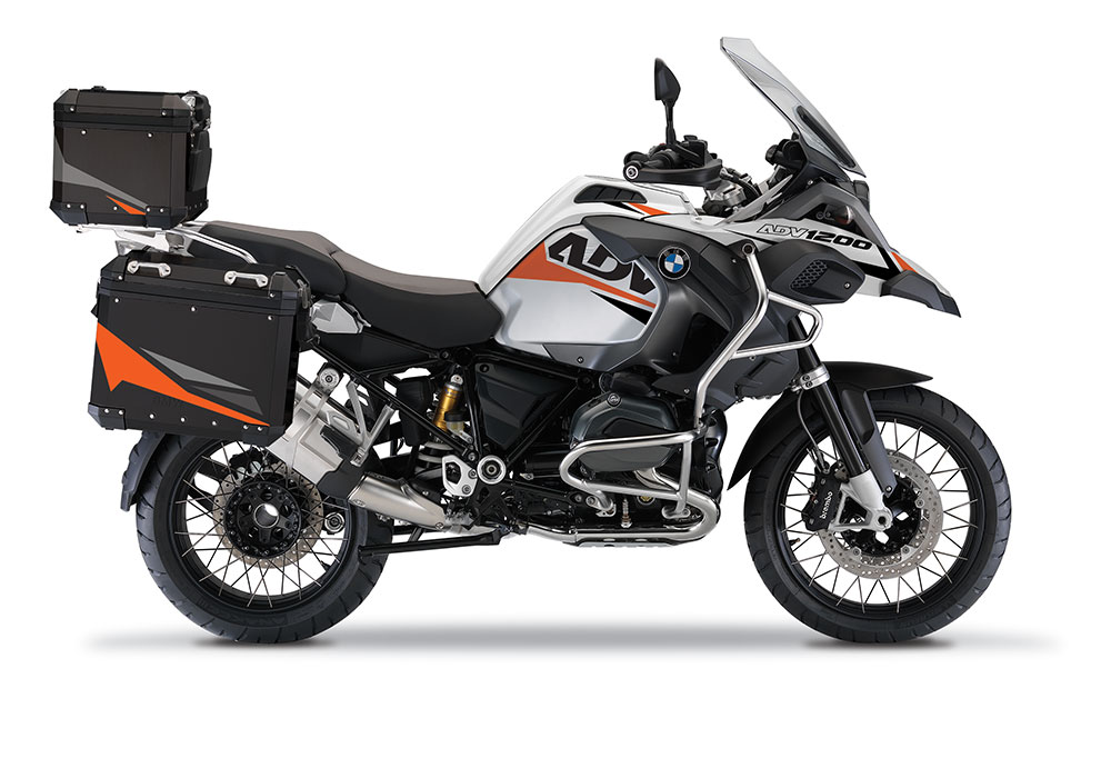 BMW Black Aluminum Top Box Alive Silver & Orange Stickers