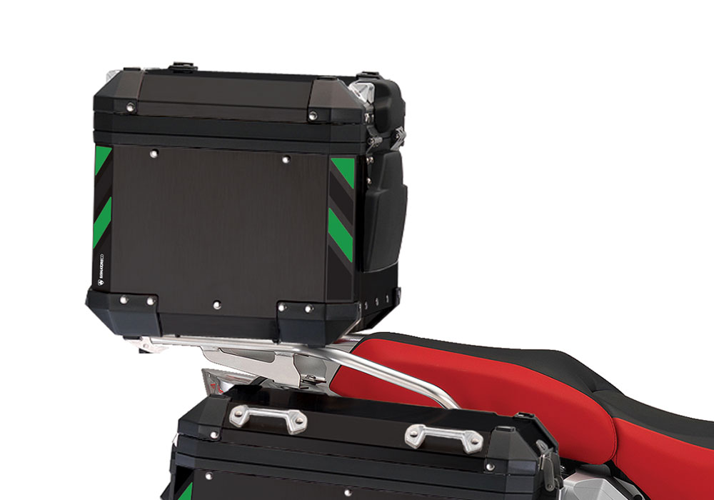 BMW Black Aluminum Top Box Black & Green Reflective Stripes