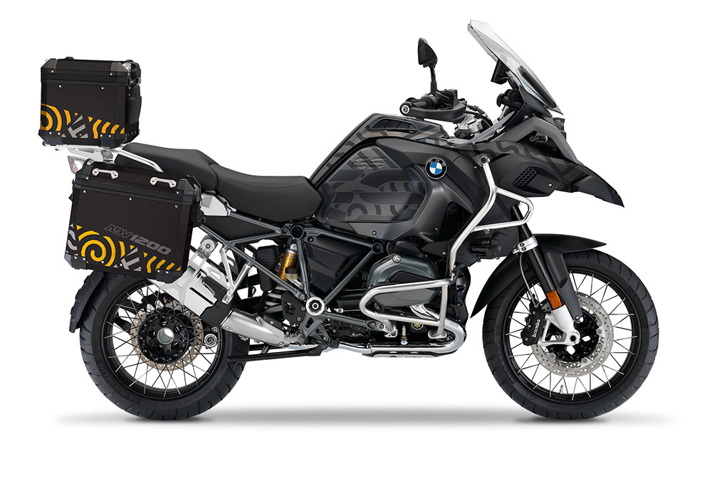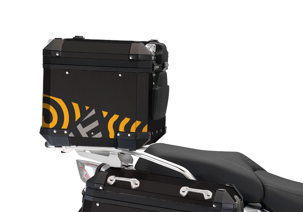Signature Custom Designs FOUR ELEMENTS Series styling kit gives your BMW Black Aluminum Top Box a unique and adventure character.