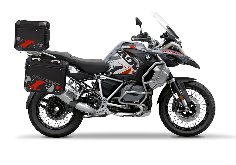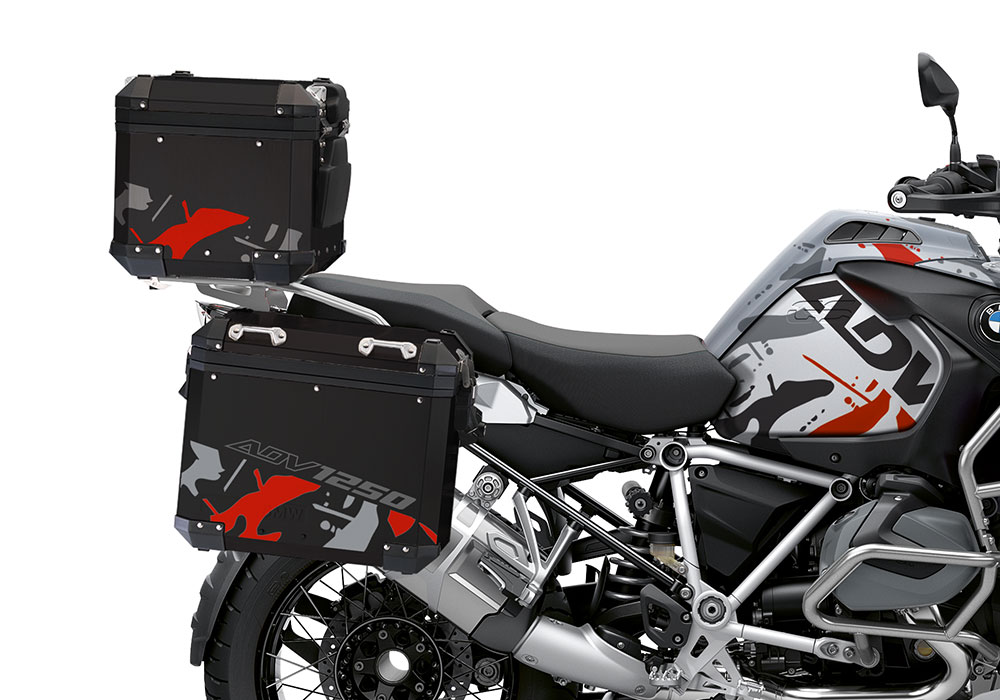 BMW Black Aluminum Top Box Safari Grey & Red Stickers