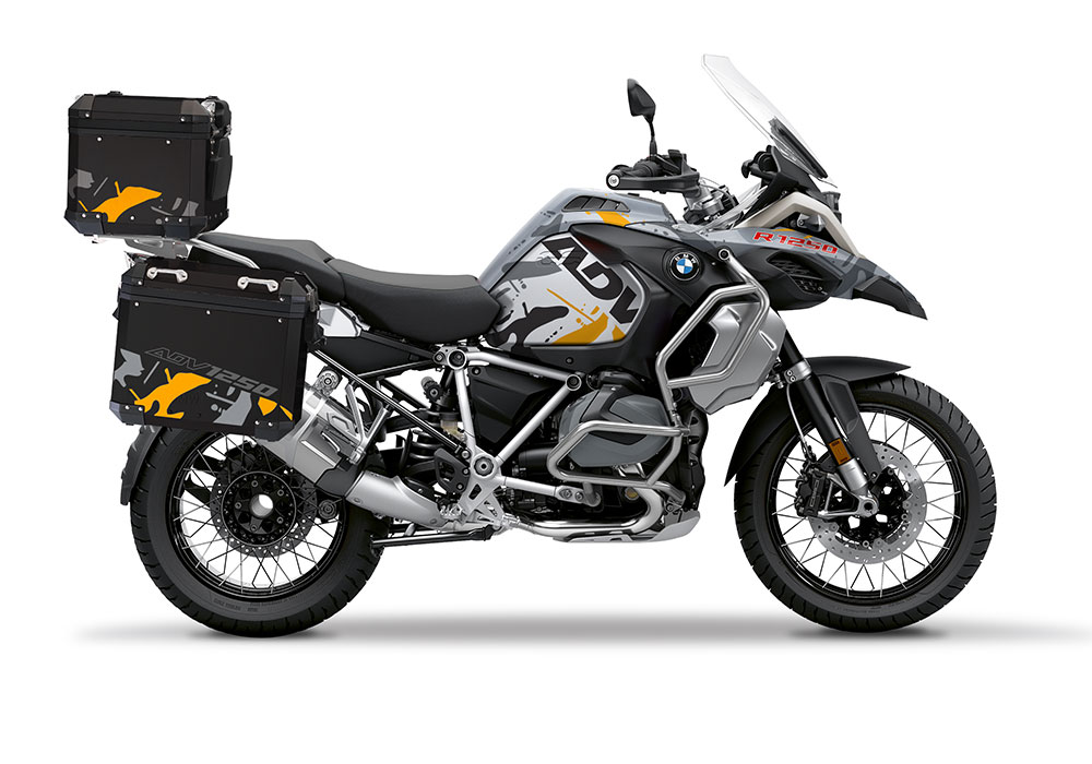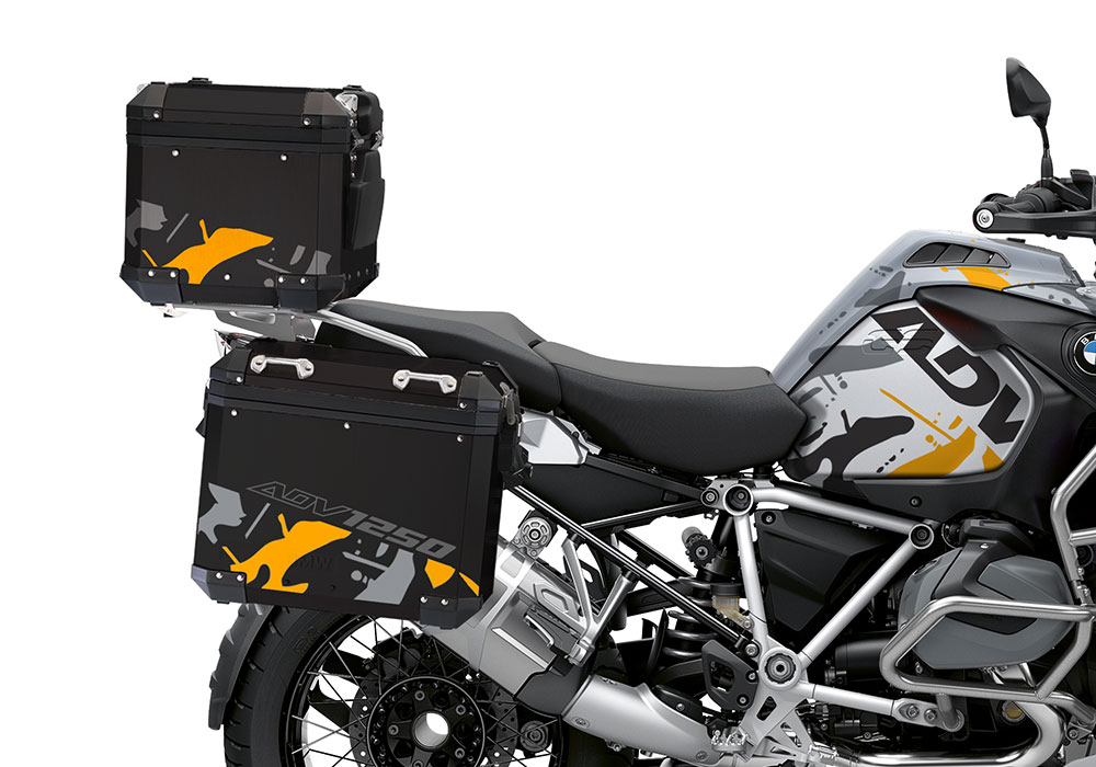 BMW Black Aluminum Top Box Safari Grey & Yellow Stickers