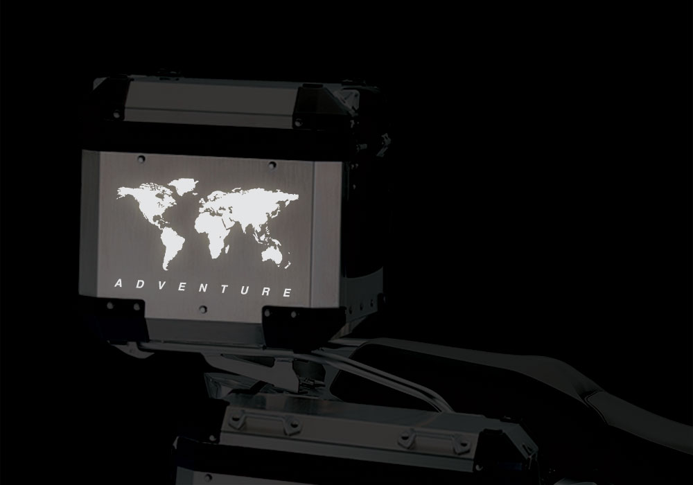 ignature Custom Designs THE GLOBE Series styling kit, gives to your BMW Aluminum Top Box a unique and adventure character.