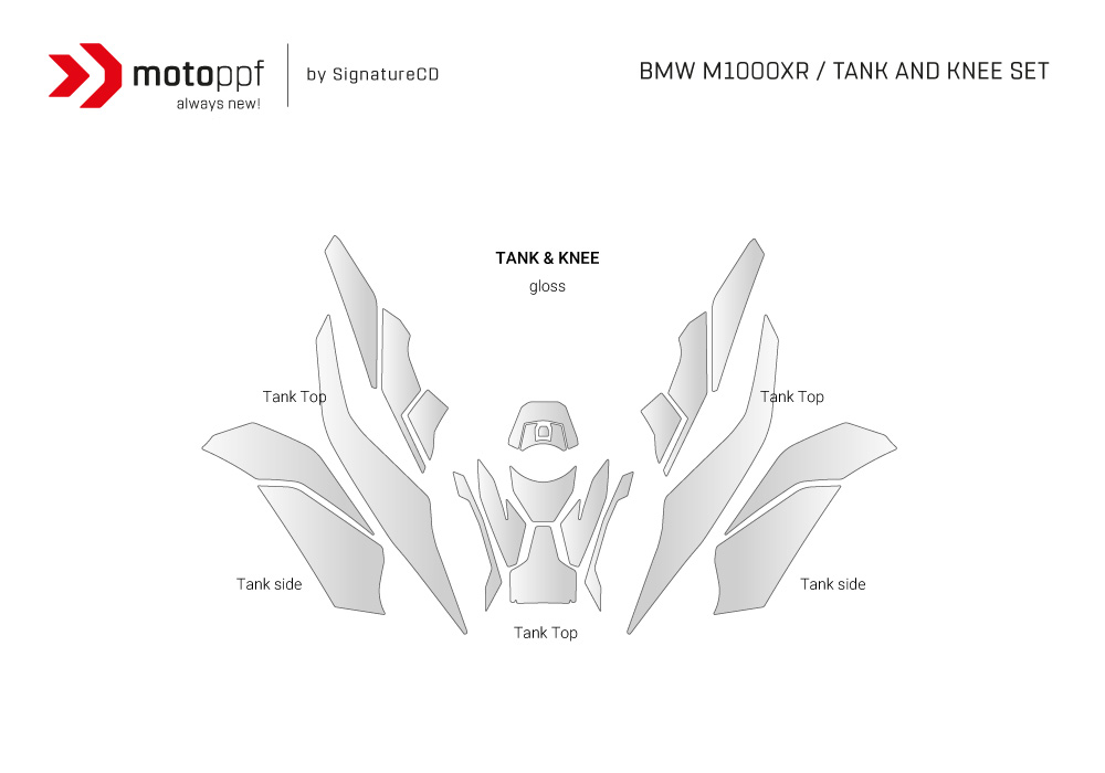The MOTOPPF “Tank and Knee Set,” by SignatureCD, is specifically designed to offer comprehensive motorcycle paint protection: Our Paint Protective Film (PPF) sets come in gloss Invisible finish to perfectly match your bike’s original look.