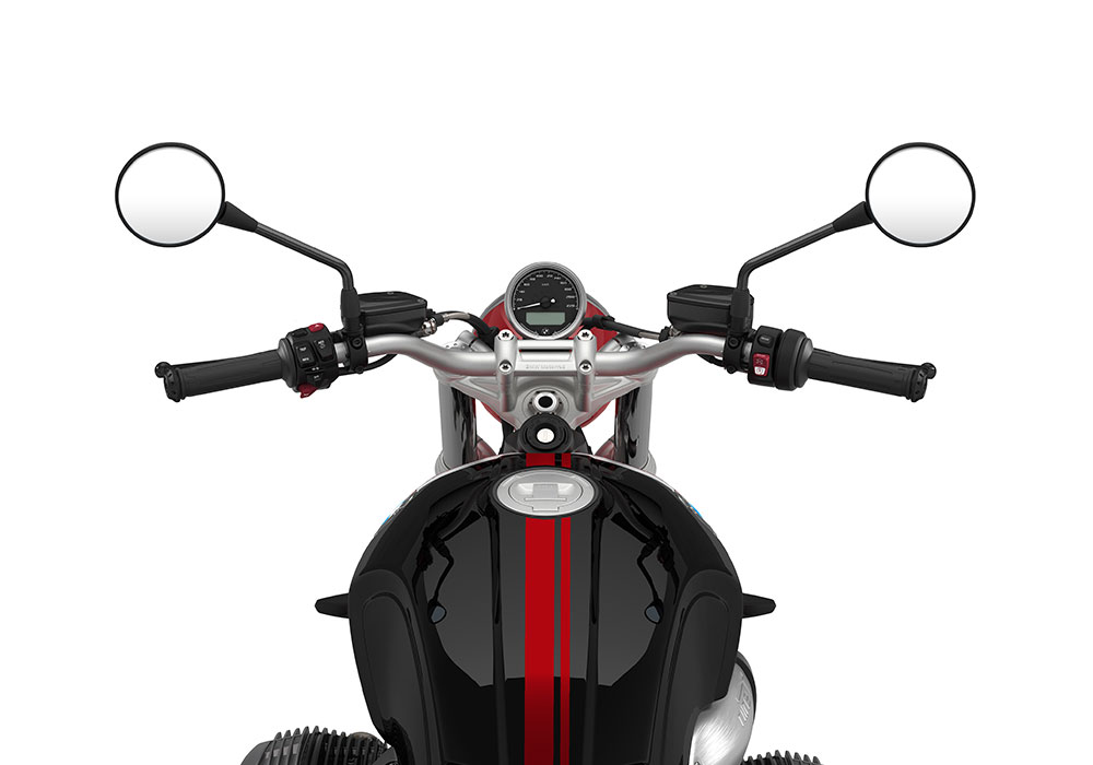 BMW R nineT Scrambler Black Storm Metallic Tank Top Red Double Line Sticker