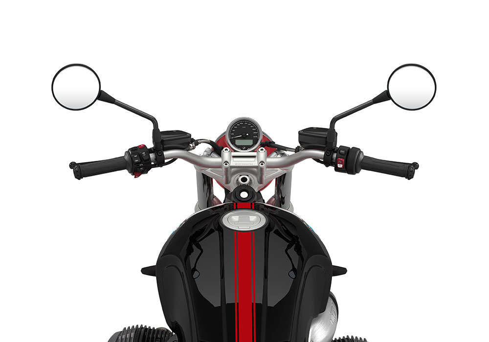 BMW R nineT Scrambler Black Storm Metallic Tank Top Red Triple Line Sticker