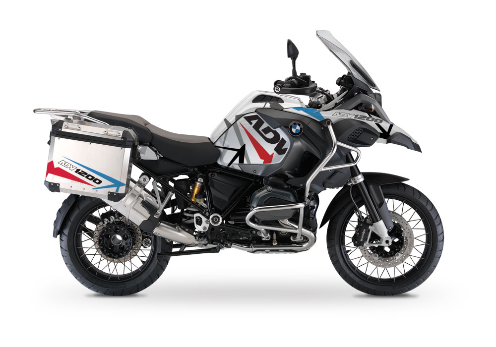 BMW Aluminum Side Panniers Spike Blue & Red Stickers Kit