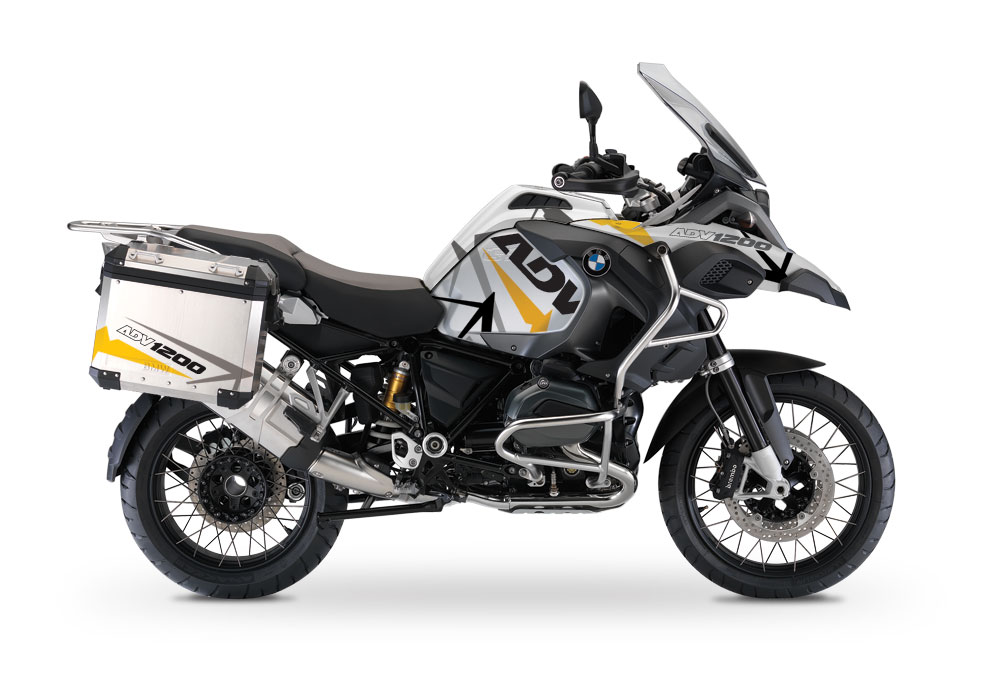 BMW Aluminum Side Panniers Spike Yellow & Grey Stickers Kit