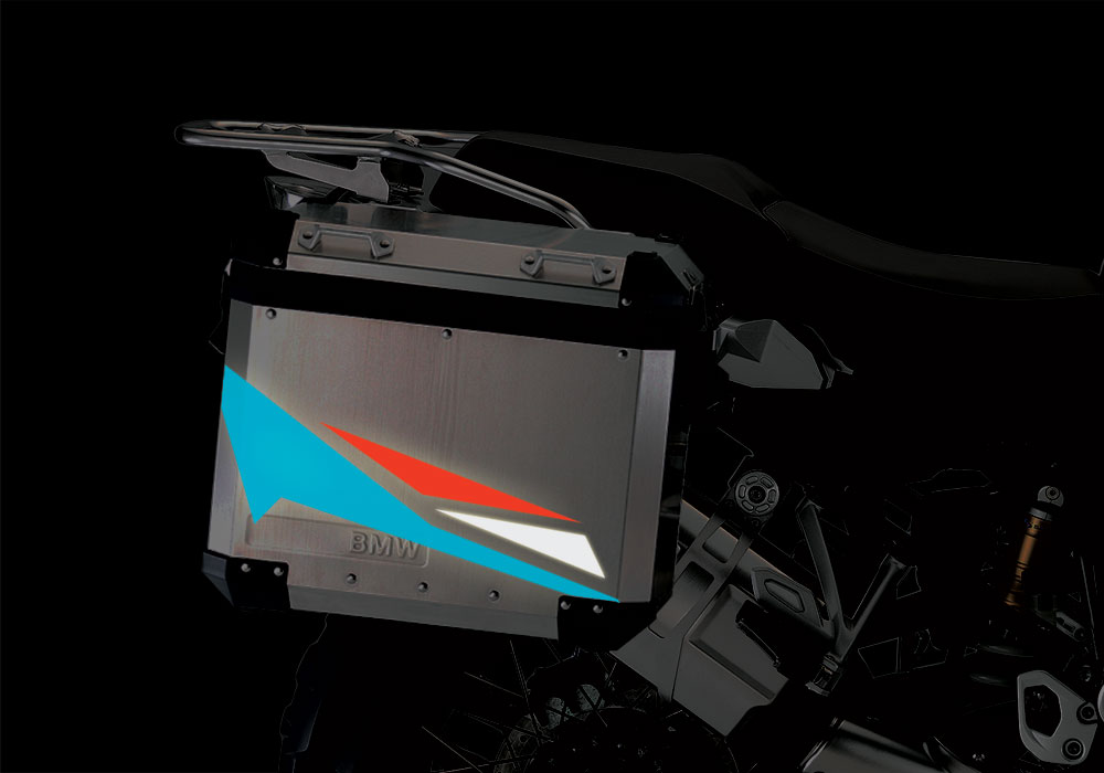 Signature Custom Designs ALIVE Series styling kit, gives to your BMW Aluminum Panniers a unique and sport character.