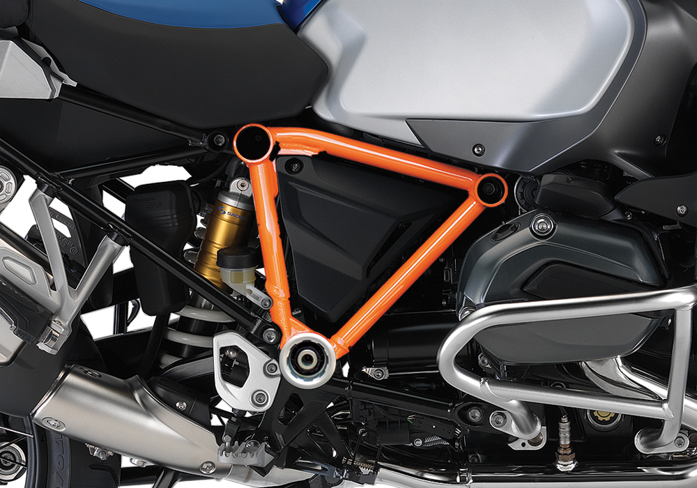 Signature Custom Designs Revolutionary and Innovative Pyramid Frame Styling Kit, changes the color of your BMW R1200GS LC Adventure frame giving a powder coating effect, without affecting the original color by using ready to fit sticker kit.
