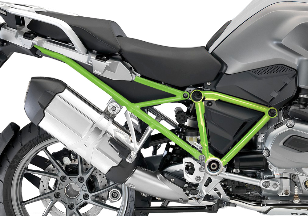 Signature Custom Designs Revolutionary and Innovative GS Frame Styling Kit, changes the color of your BMW R1200GS LC frame giving a powder coating effect, without affecting the original color by using ready to fit sticker kit.