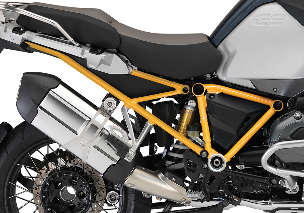 Signature Custom Designs Revolutionary and Innovative GS Frame Styling Kit, changes the color of your BMW R1200GS LC Adventure frame giving a powder coating effect, without affecting the original color by using ready to fit sticker kit.