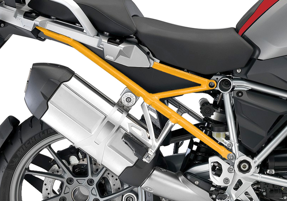 Signature Custom Designs Revolutionary and Innovative SubFrame Styling Kit, changes the color of your BMW R1200GS LC frame giving a powder coating effect, without affecting the original color by using ready to fit sticker kit.