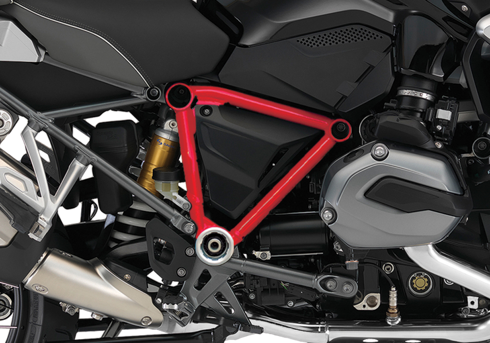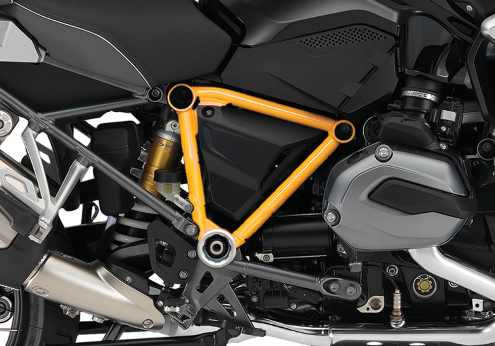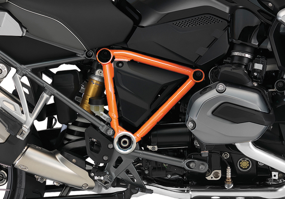 Signature Custom Designs Revolutionary and Innovative Pyramid Frame Styling Kit, changes the color of your BMW R1200GS LC frame giving a powder coating effect, without affecting the original color by using ready to fit sticker kit.
