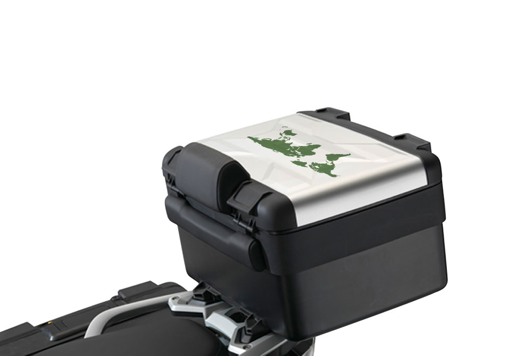 Signature Custom Designs THE GLOBE Series styling kit, gives to your BMW Vario Top Box a unique and travel character.
