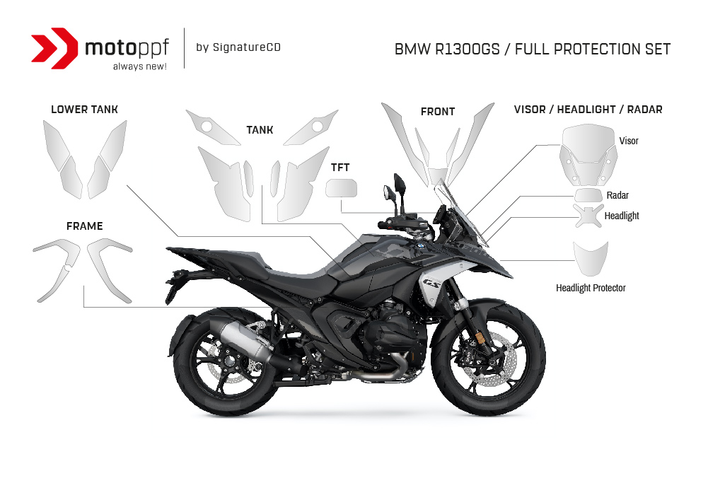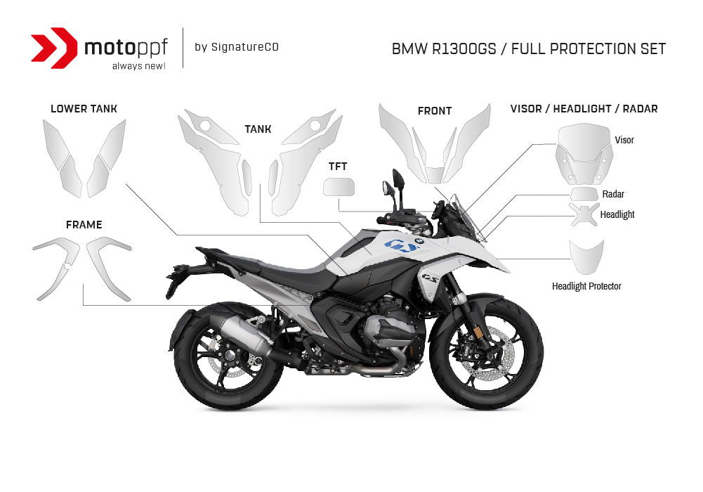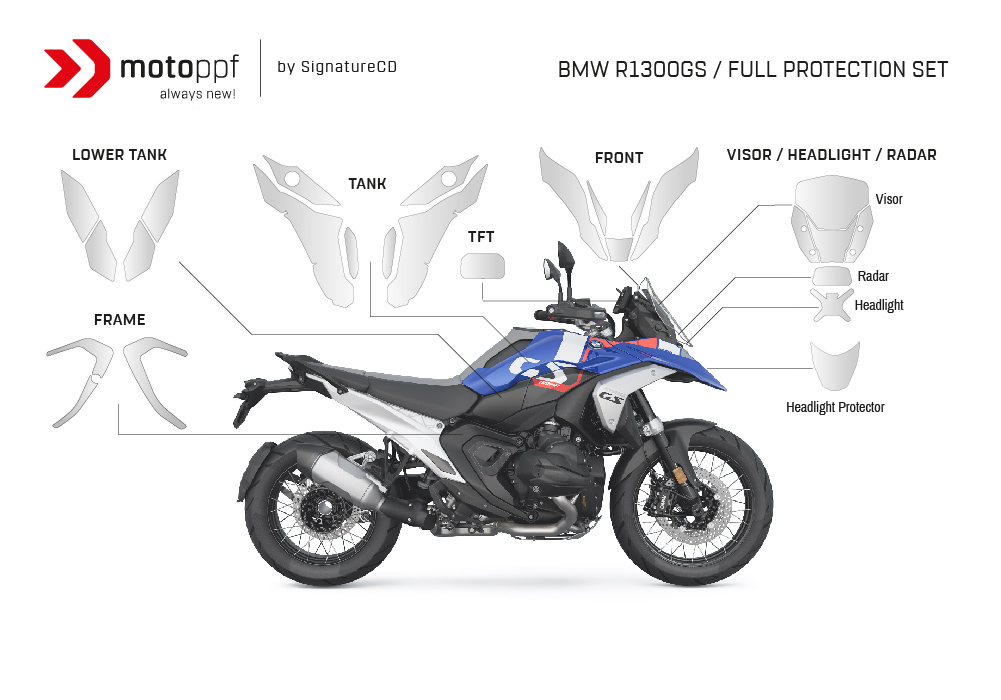 The MOTOPPF “Full Protection Set,” by SignatureCD, is specifically designed to offer comprehensive motorcycle paint protection: Our Paint Protective Film (PPF) sets come in gloss and matte finishes to perfectly match your bike’s original look.