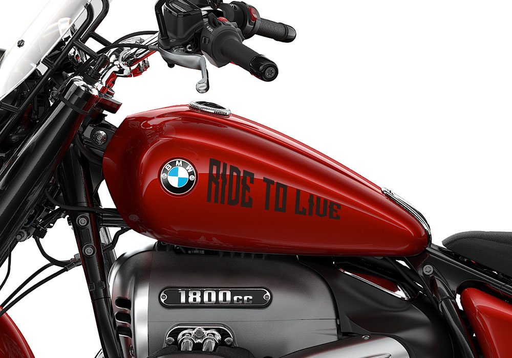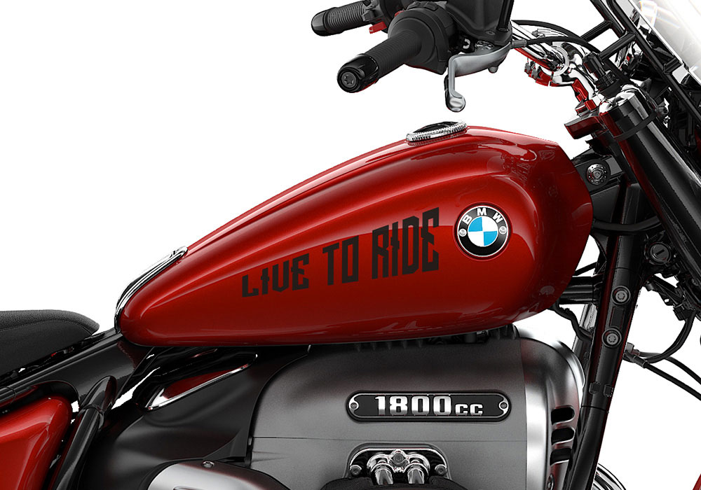 BMW R18 Classic Mars Red Metallic RIDE TO LIVE/ LIVE TO RIDE Black Stickers