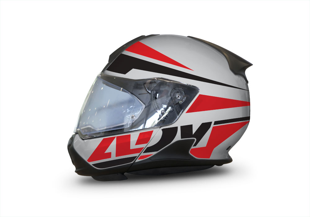 BMW System 7 Helmet (Silver) Vivo Series Red & Black Stickers