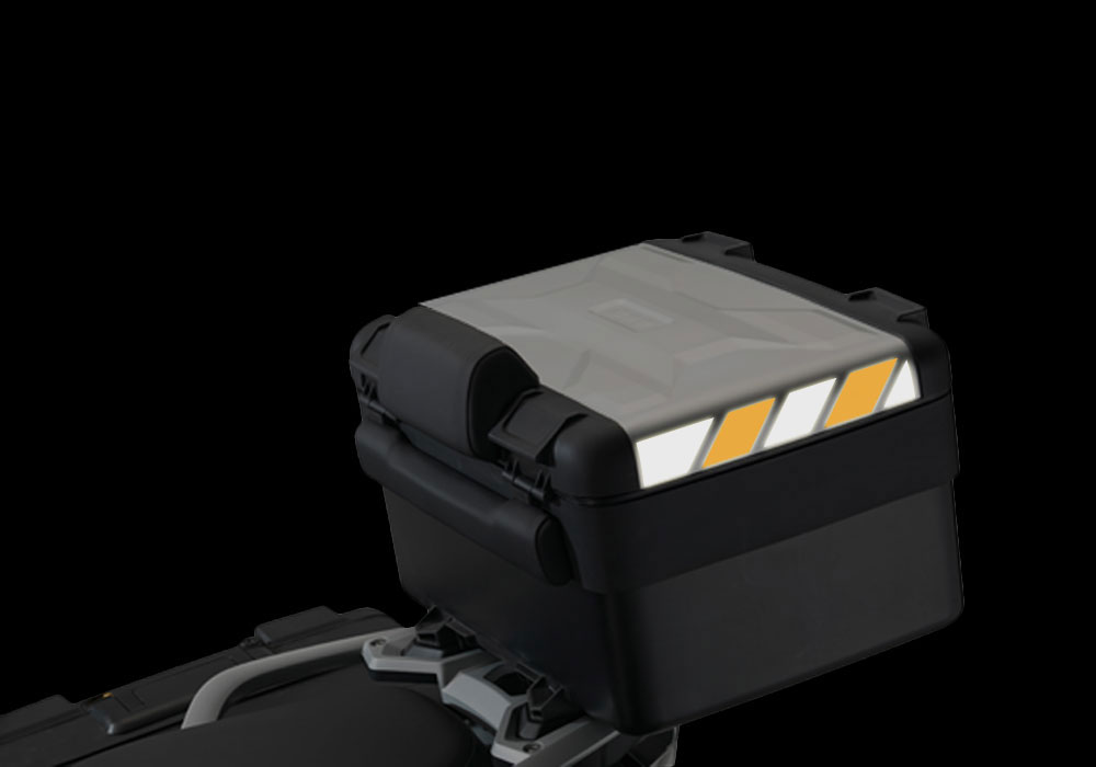 Signature Custom Designs reflective Stripes, gives to your BMW Vario Top Box visibility during the night.