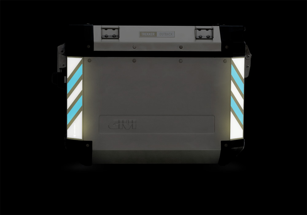Signature Custom Designs reflective Stripes, gives to your GIVI Trekker Outback Side Panniers visibility during the night.