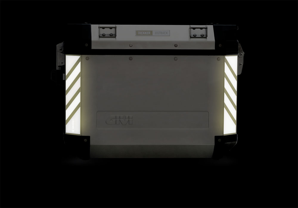 Signature Custom Designs reflective Stripes, gives to your GIVI Trekker Outback Side Panniers visibility during the night.