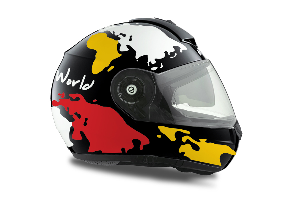 Signature Custom Designs THE GLOBE Series styling kit, gives to your Schuberth C3 Pro Helmet a unique and adventure character.