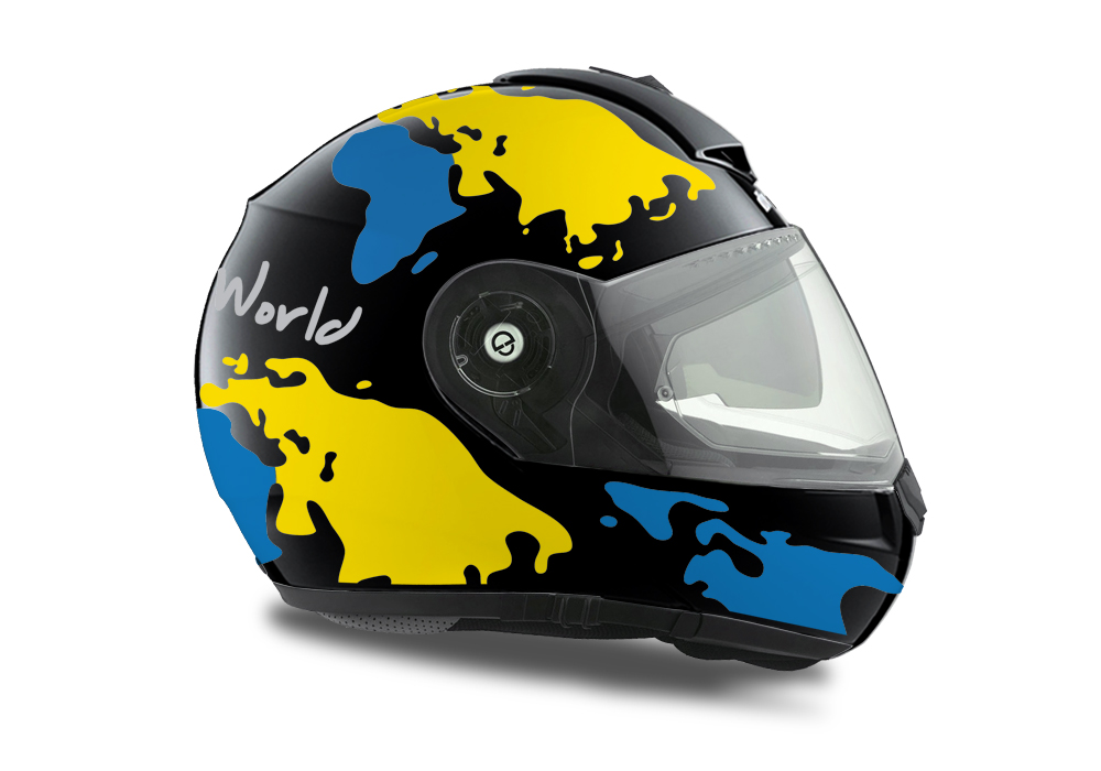 Signature Custom Designs THE GLOBE Series styling kit, gives to your Schuberth C3 Pro Helmet a unique and adventure character.