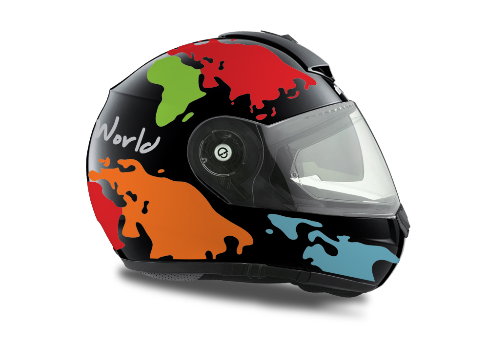 Signature Custom Designs THE GLOBE Series styling kit, gives to your Schuberth C3 Pro Helmet a unique and adventure character.