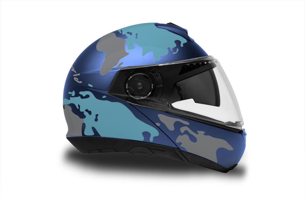Signature Custom Designs THE GLOBE Series styling kit gives your Schuberth C4 & C4 Pro Helmet a unique and adventure character.