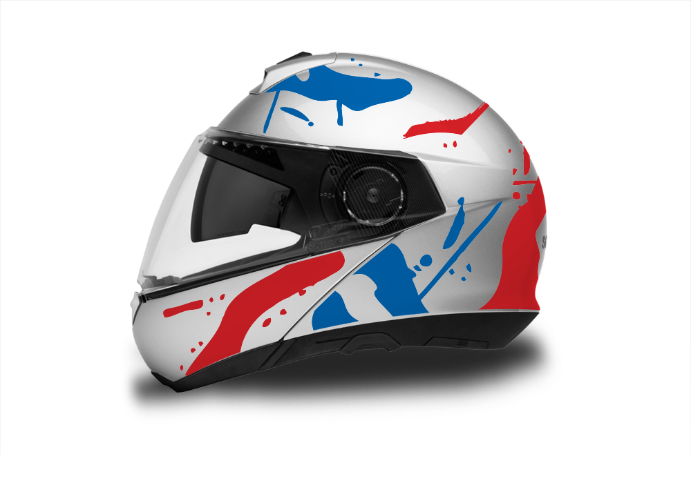 Schuberth C4/ C4 Pro Helmet (Silver) Safari Series Red & Blue