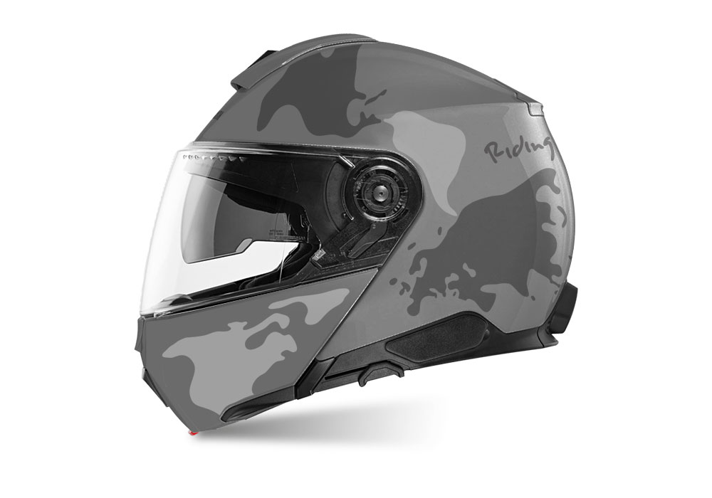 Signature Custom Designs THE GLOBE Series styling kit gives your Schuberth C5 Helmet a unique and adventurous character.