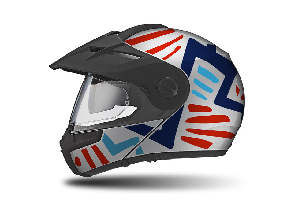 Schuberth E1 Helmet (Silver) Massai Series Red Blue Variations Stickers