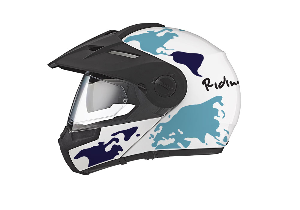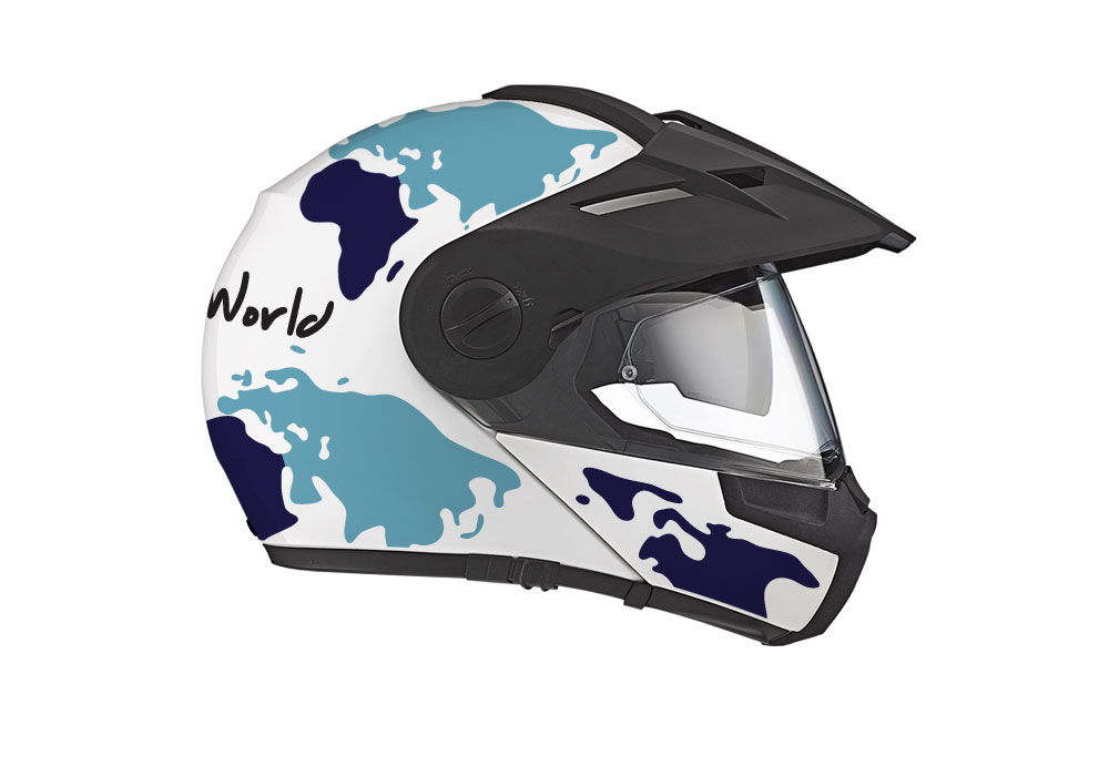 Signature Custom Designs THE GLOBE Series styling kit, gives to your Schuberth E1 Helmet a unique and adventure character.