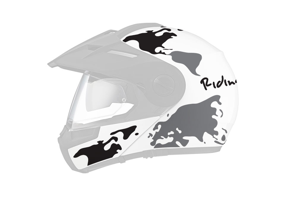 Signature Custom Designs THE GLOBE Series styling kit gives to your Schuberth E1 Helmet a unique and adventure character.