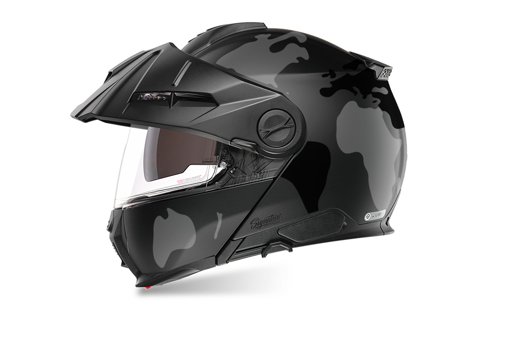 Signature Custom Designs THE GLOBE Series styling kit gives your Schuberth E2 Helmet a unique and adventurous character.