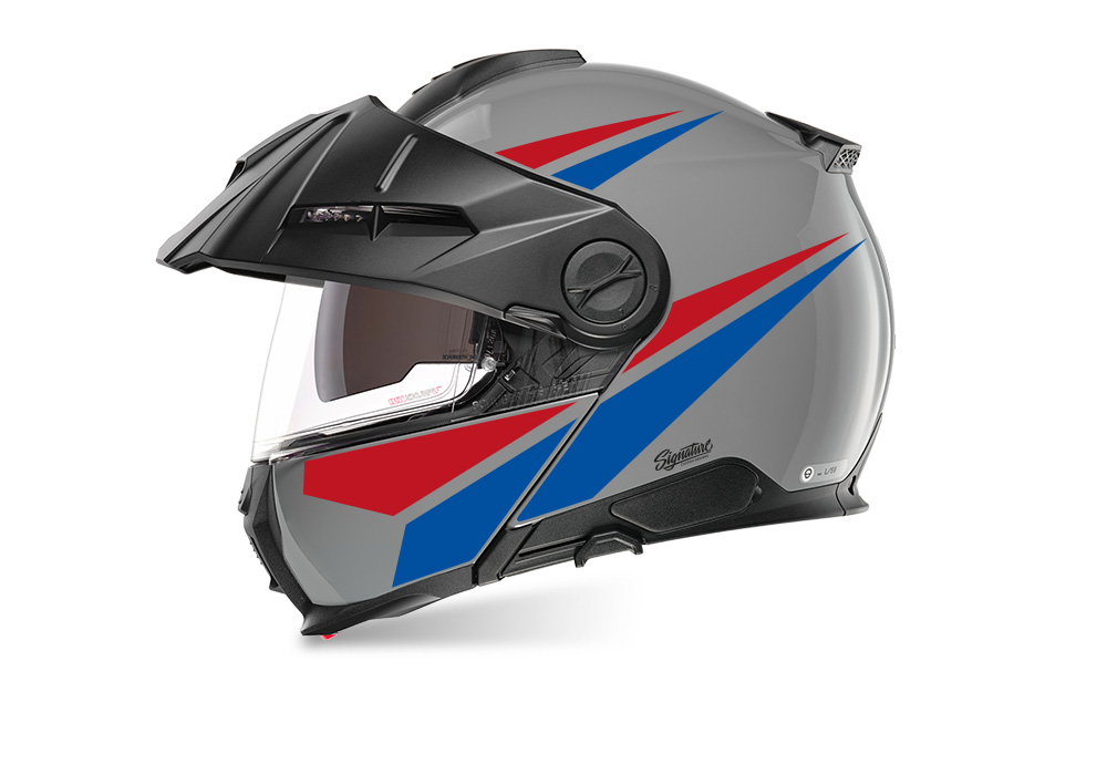 Schuberth E2 Helmet (Grey) Vivo Series Red & Blue Stickers
